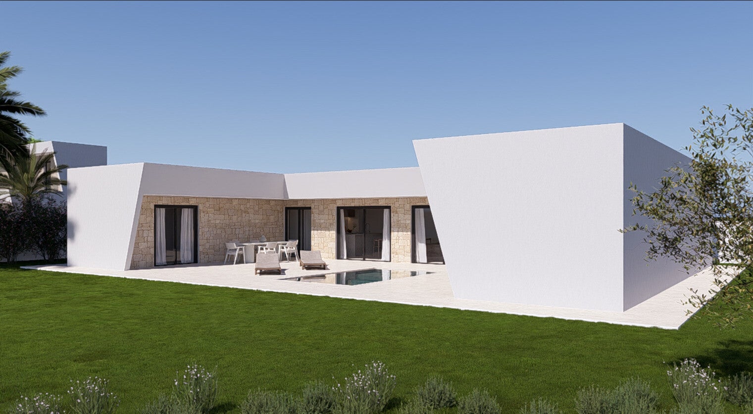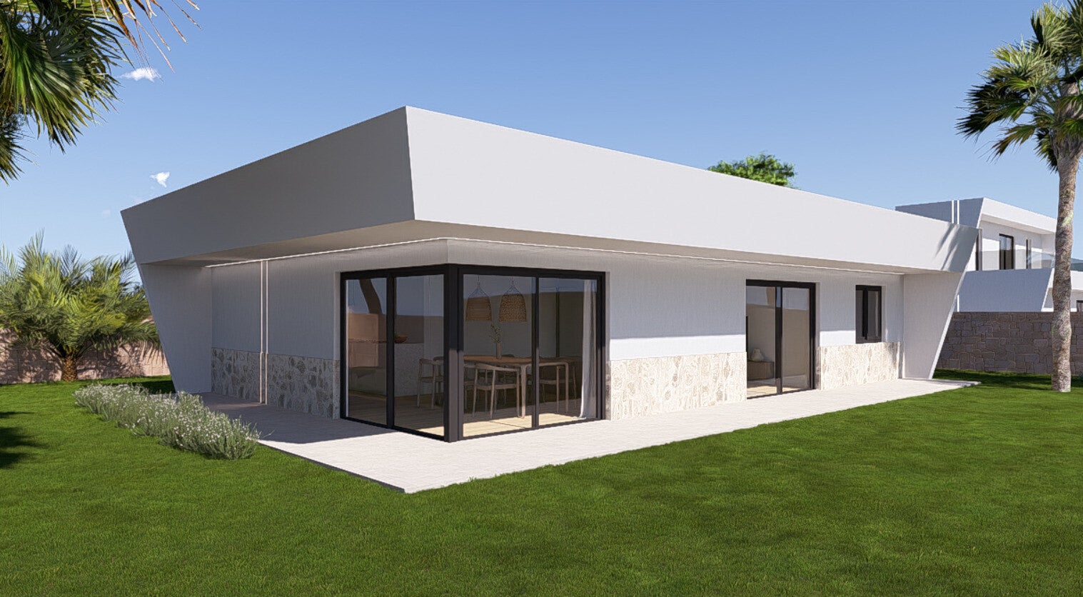 Diseño vanguardista en forma de "L" , con amplias zonas acristaladas que fusionan interior y exterior para crear un espacio luminoso y elegante.